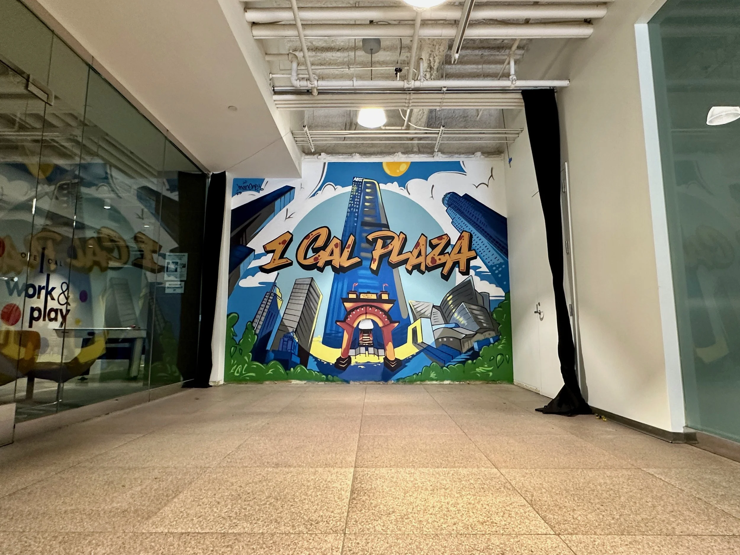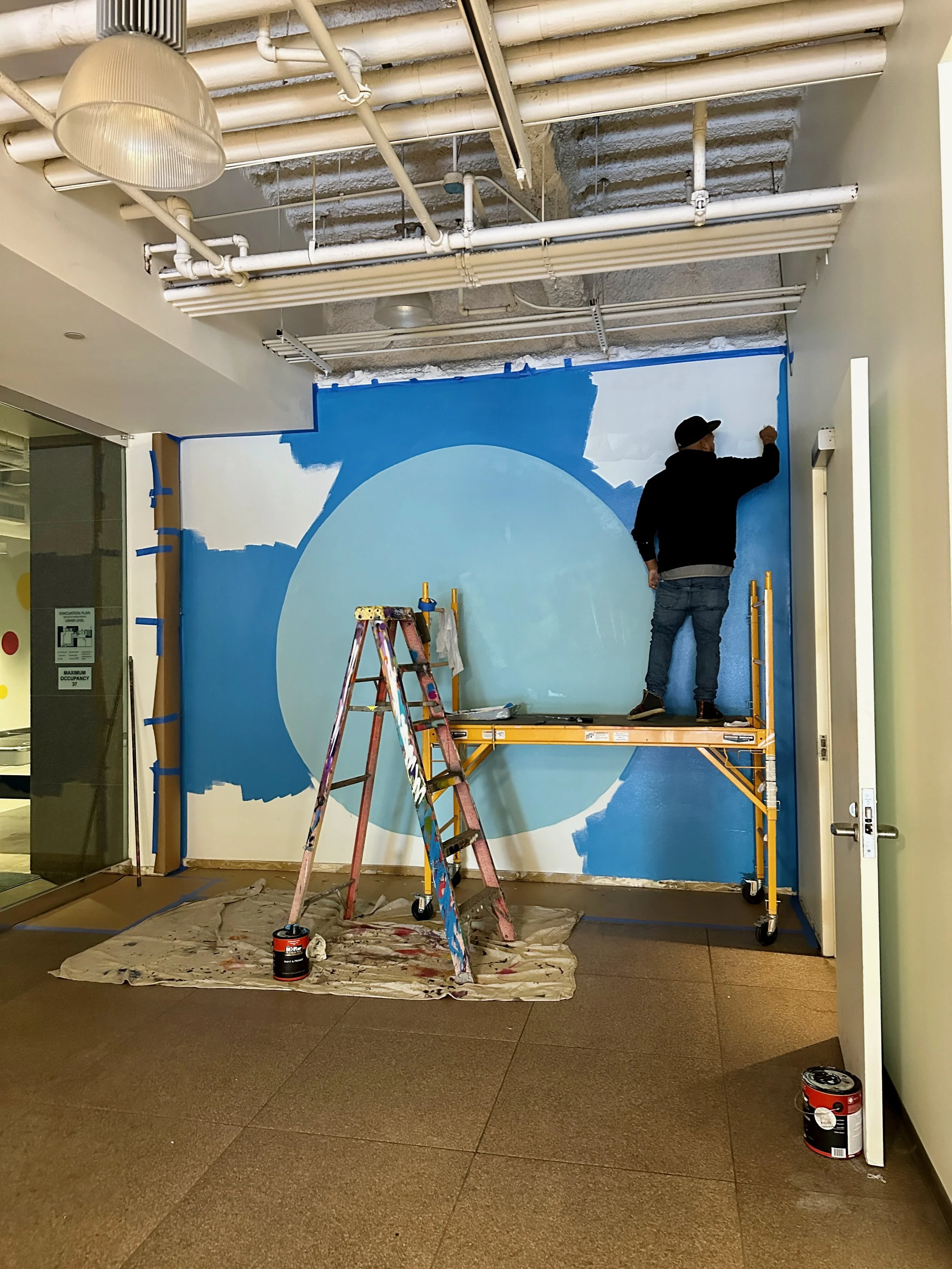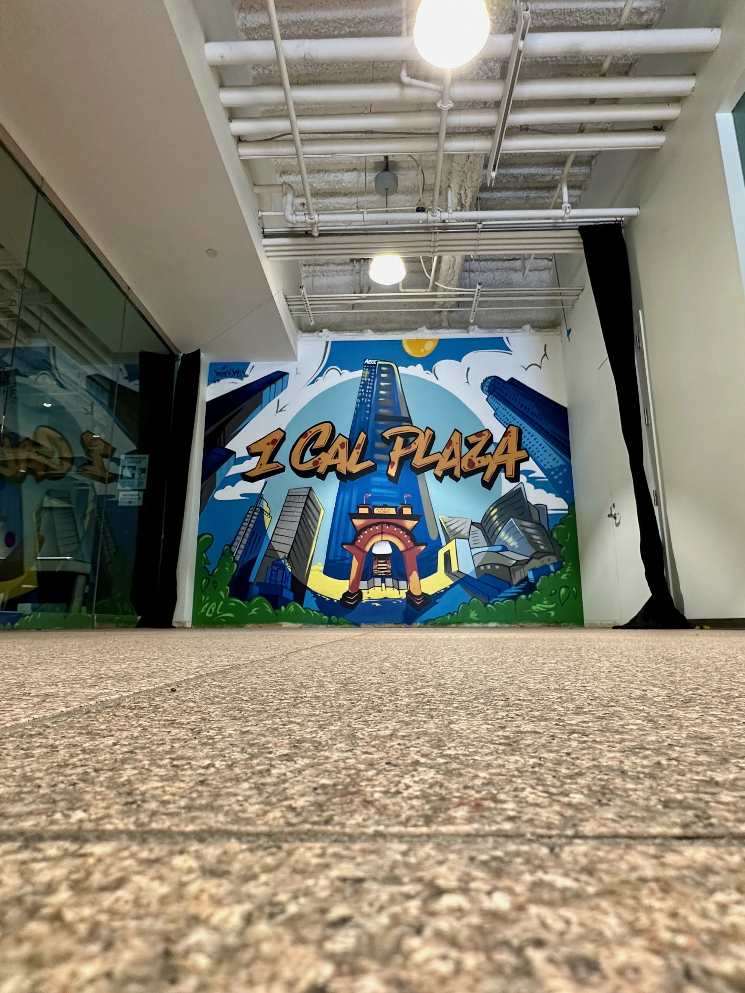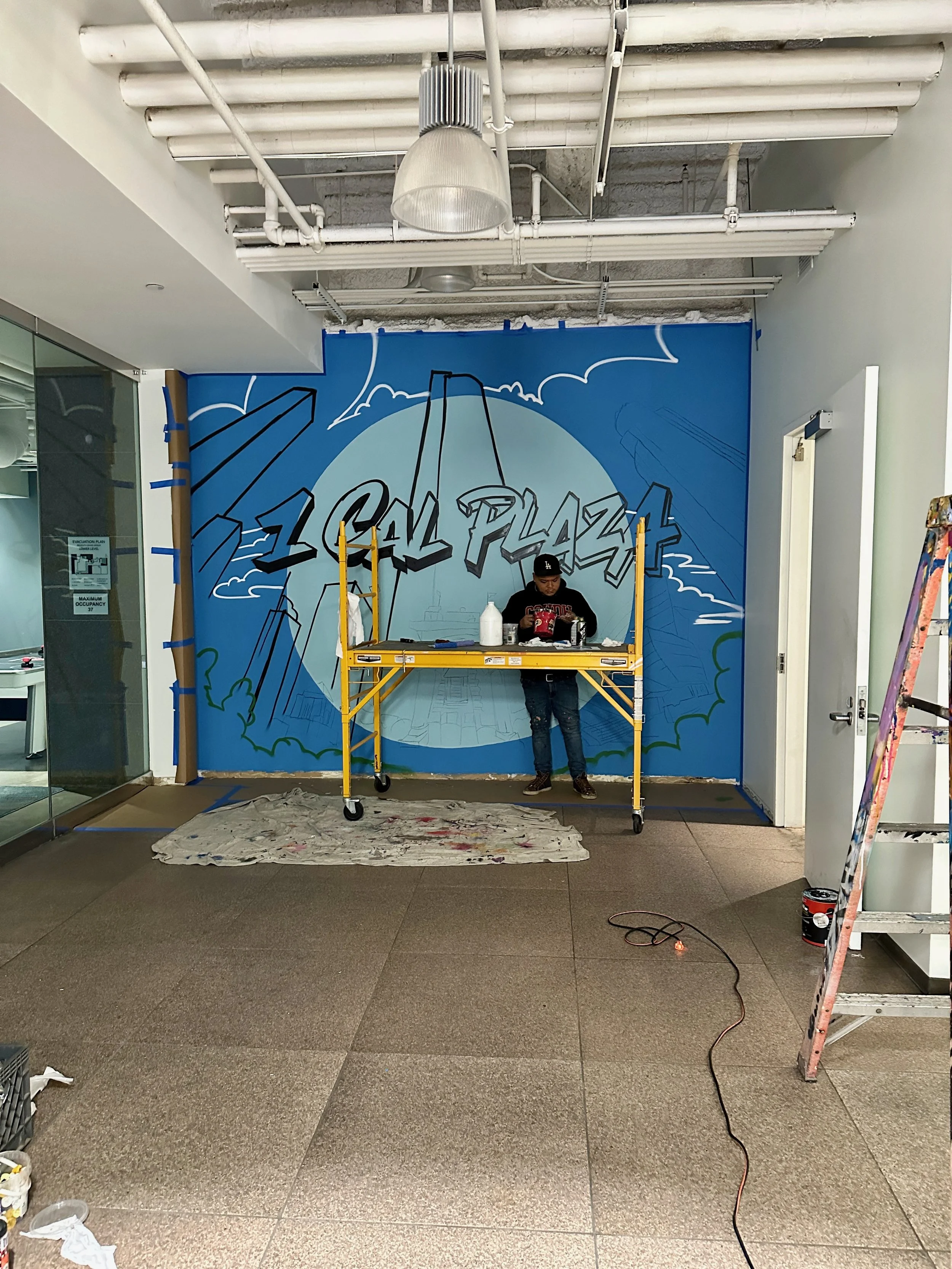 I was commissioned by Rising Realty Partners to create a fun and colorful mural at the 1 California Plaza.
