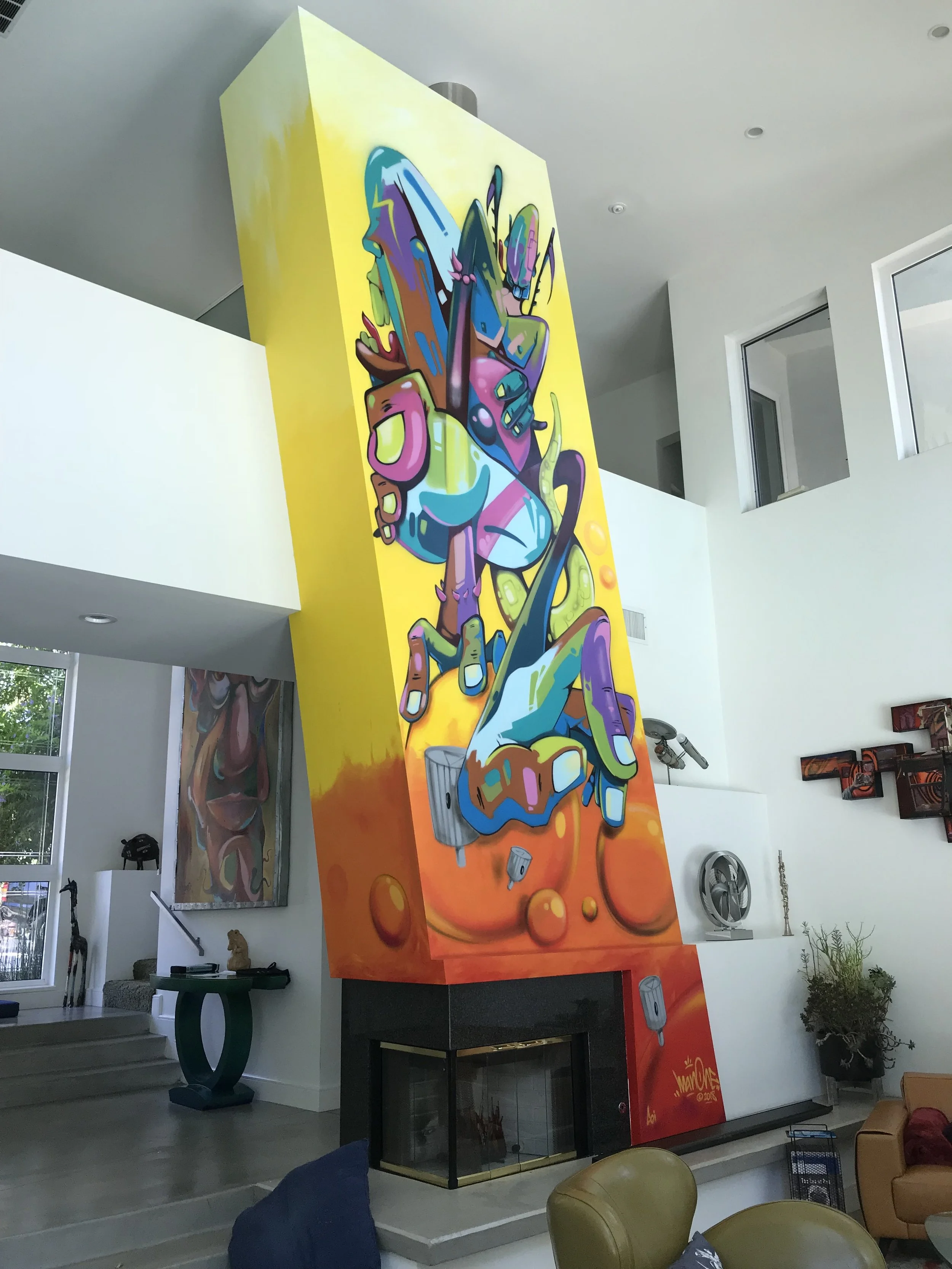 Man One’s paintings are highly collected both locally and internationally. His work transcends the street graffiti aeshetic by bringing it indoors and providing a very contemporary and colorful vibe to any home. His work is for people who want to make a statement and not afraid to take risks.