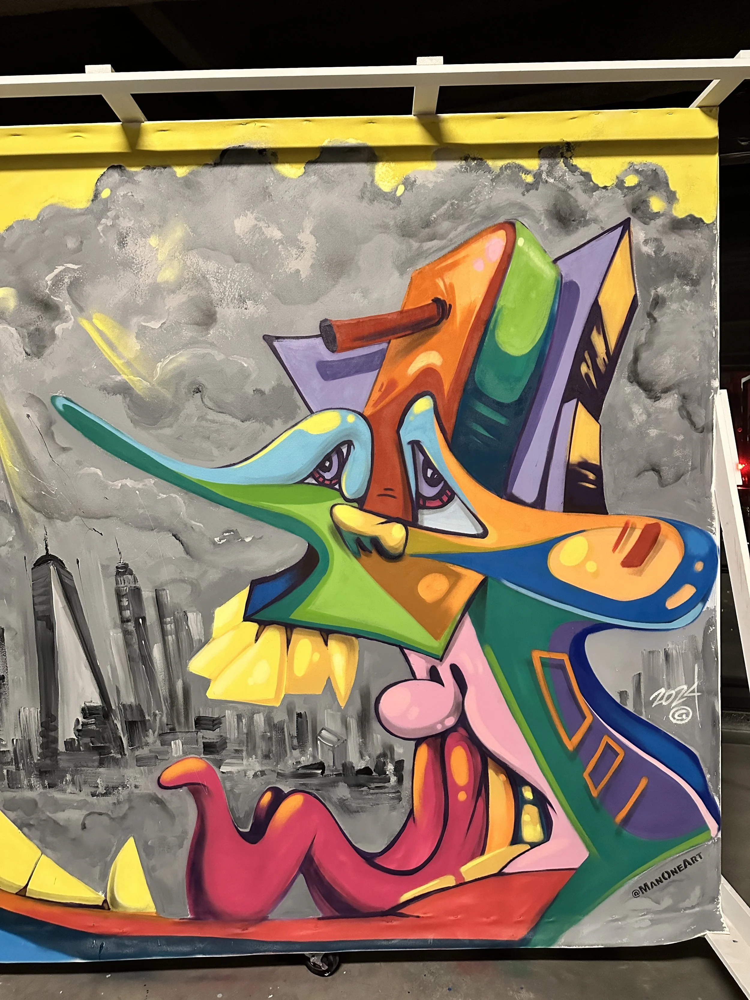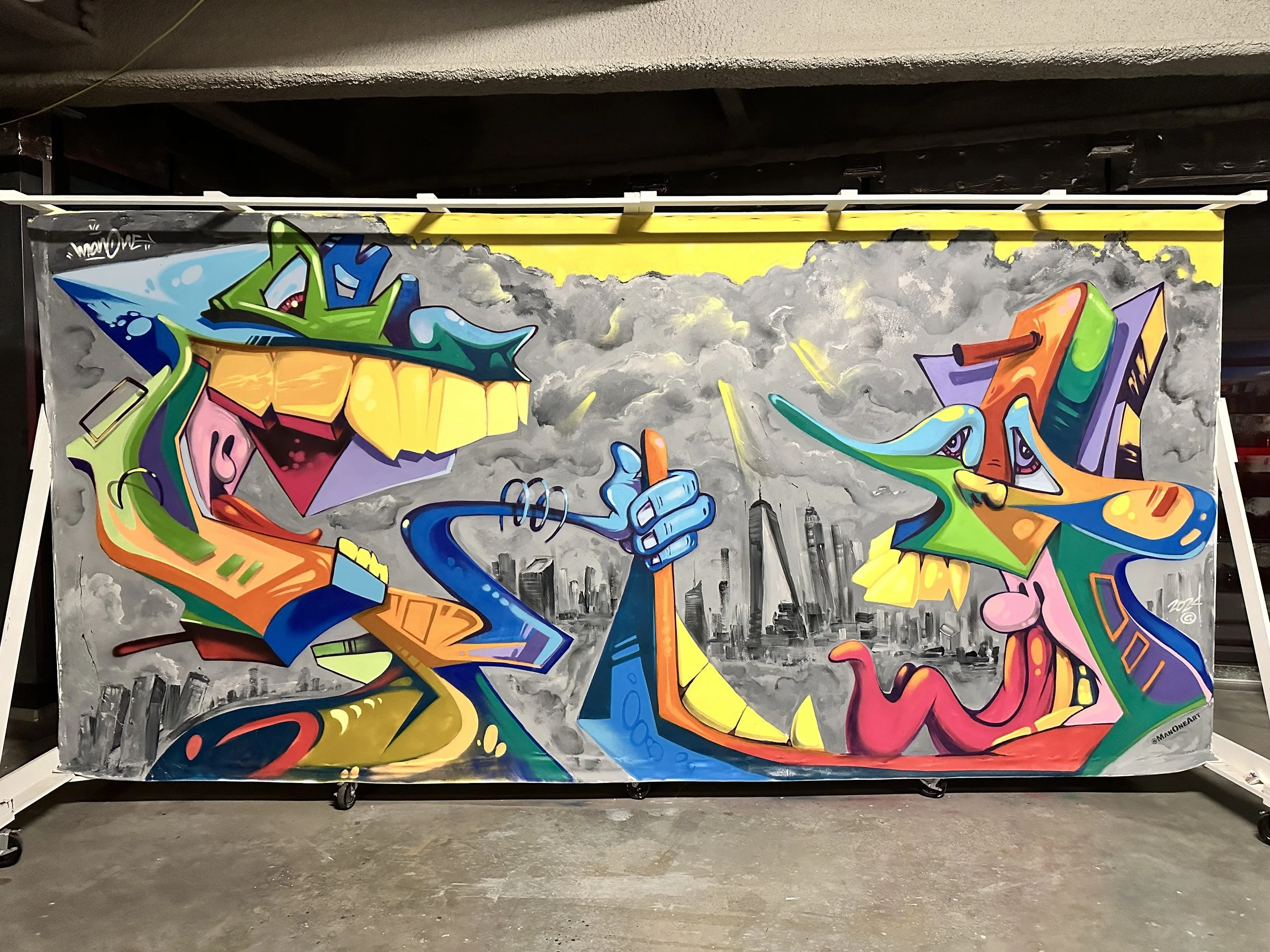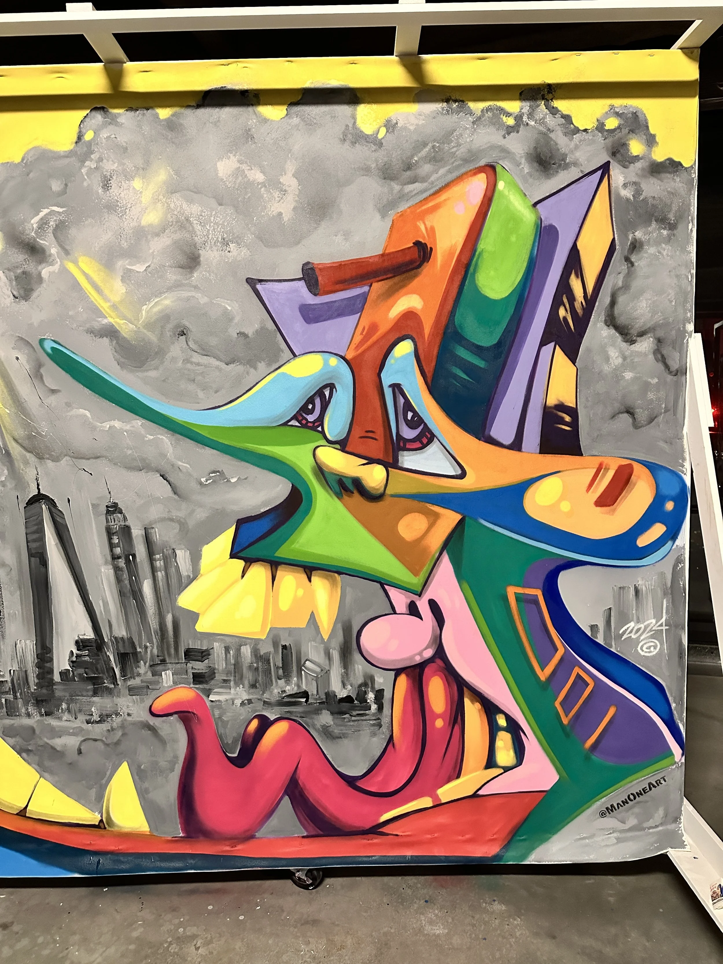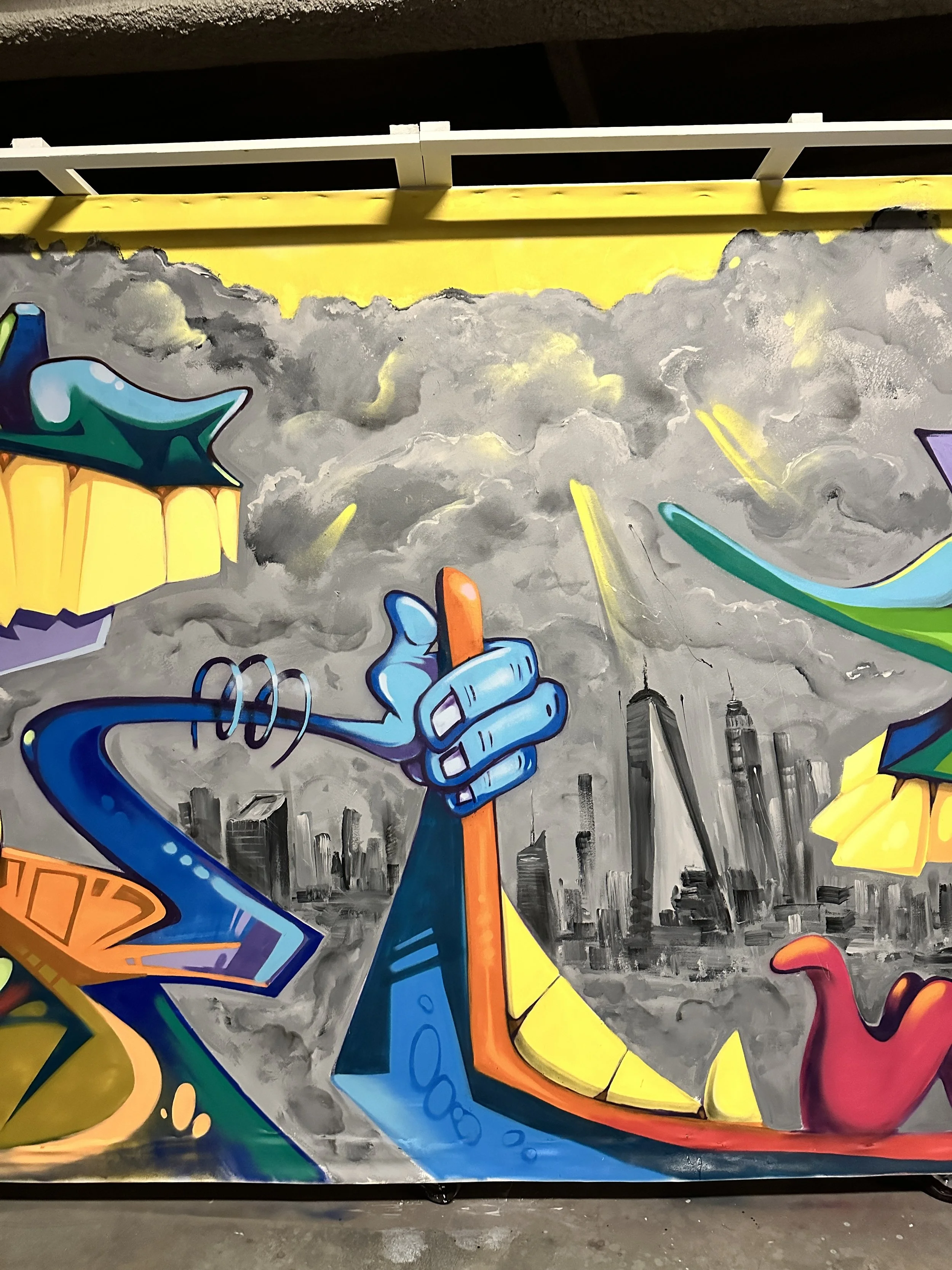 I was commissioned by Silverstein Properties to create a mural at the World Trade Center 3. The mural was painted on canvas stretched onto a 7’ x 16’