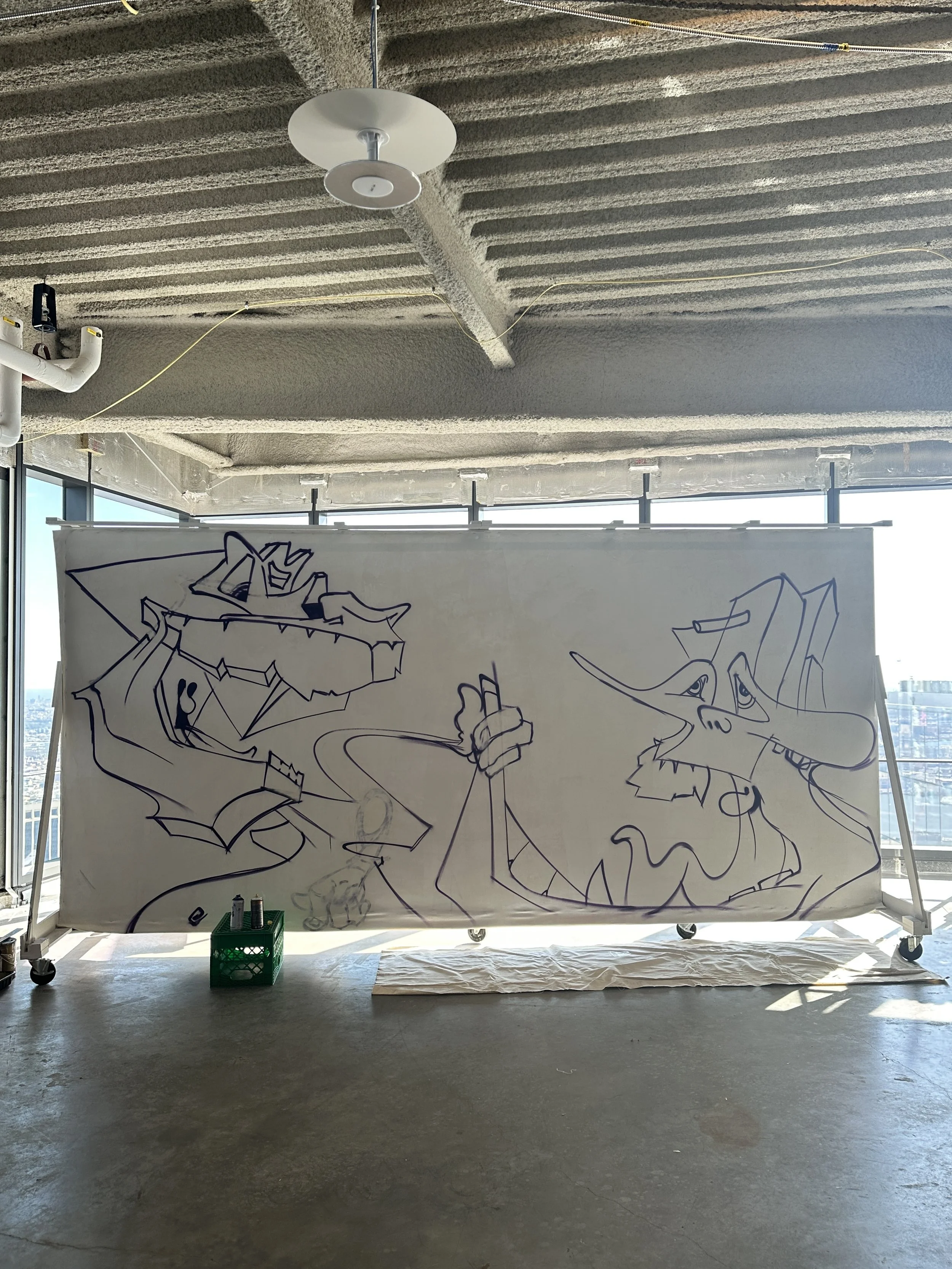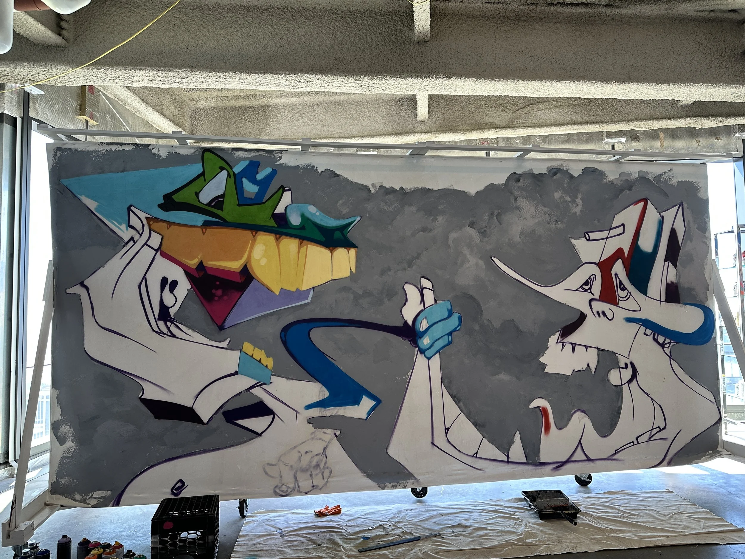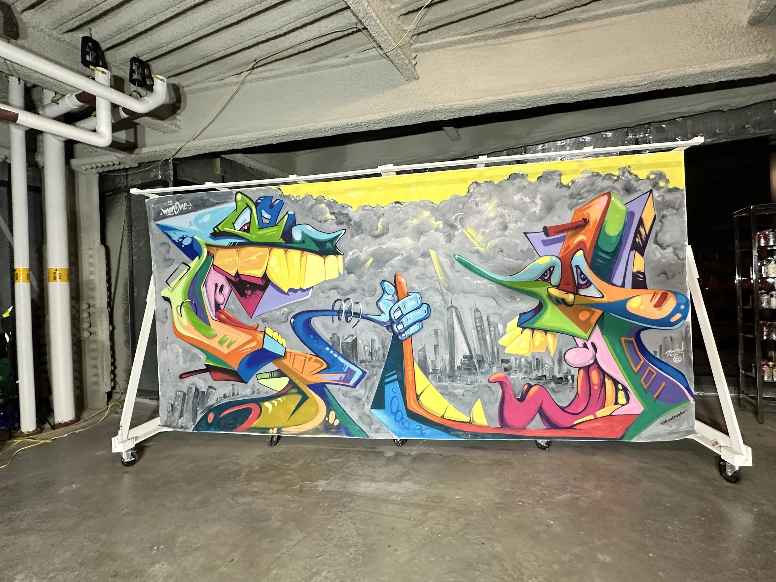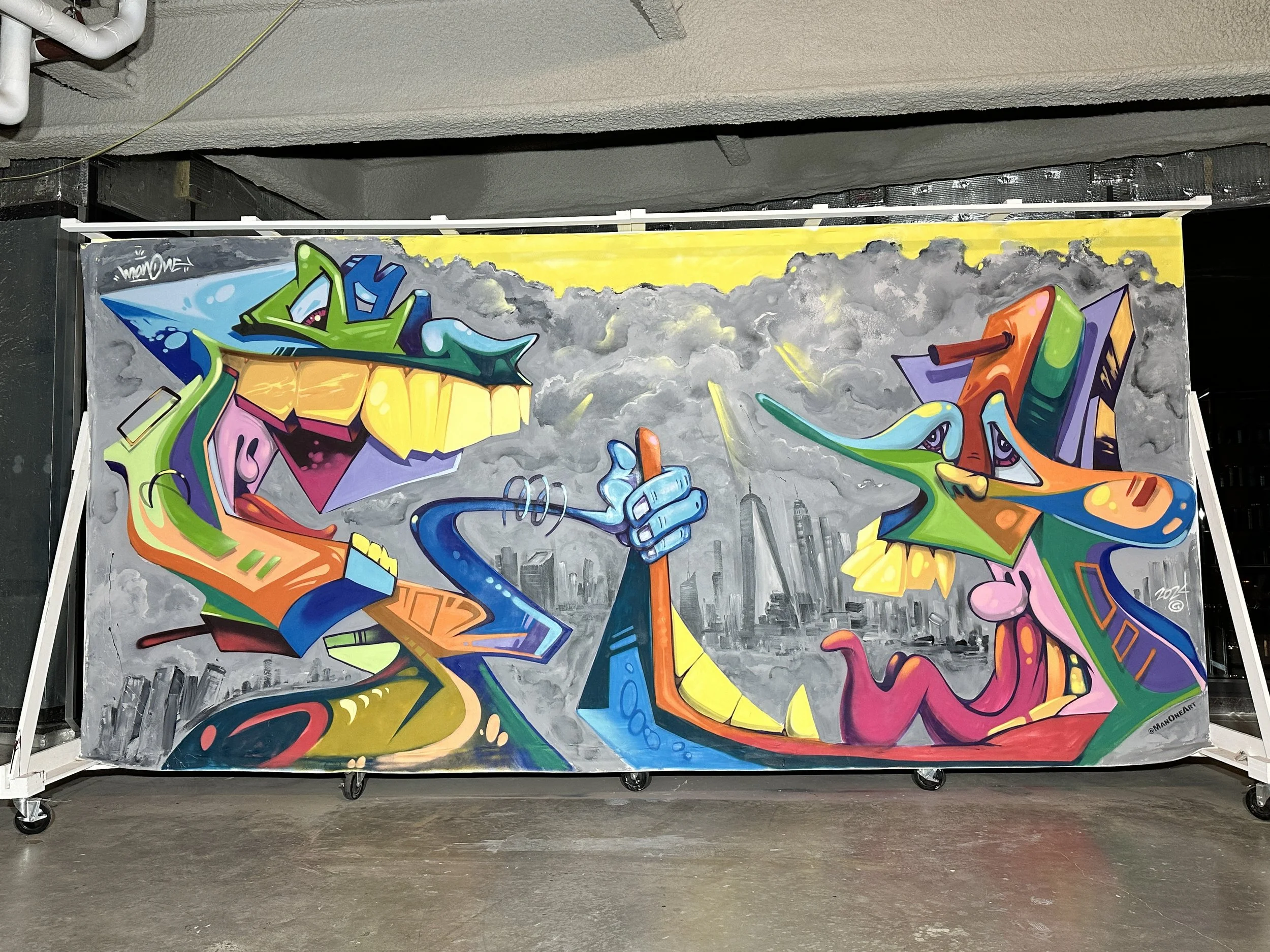 I was commissioned by Silverstein Properties to create a mural at the World Trade Center 3. The mural was painted on canvas stretched onto a 7’ x 16’