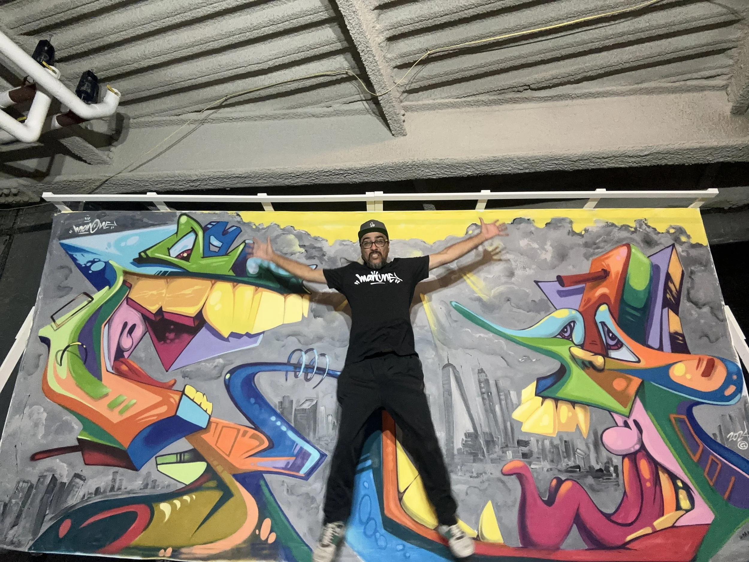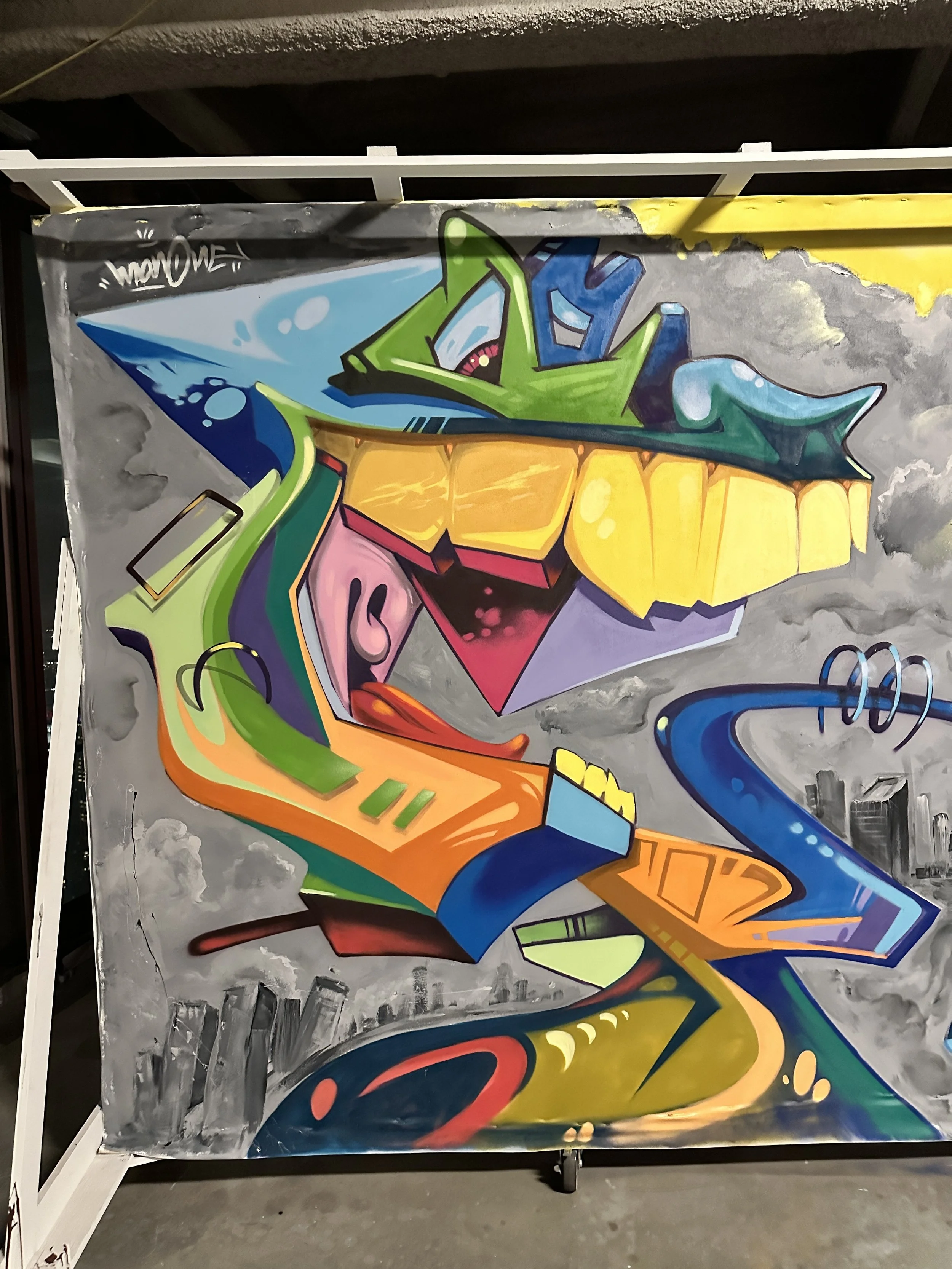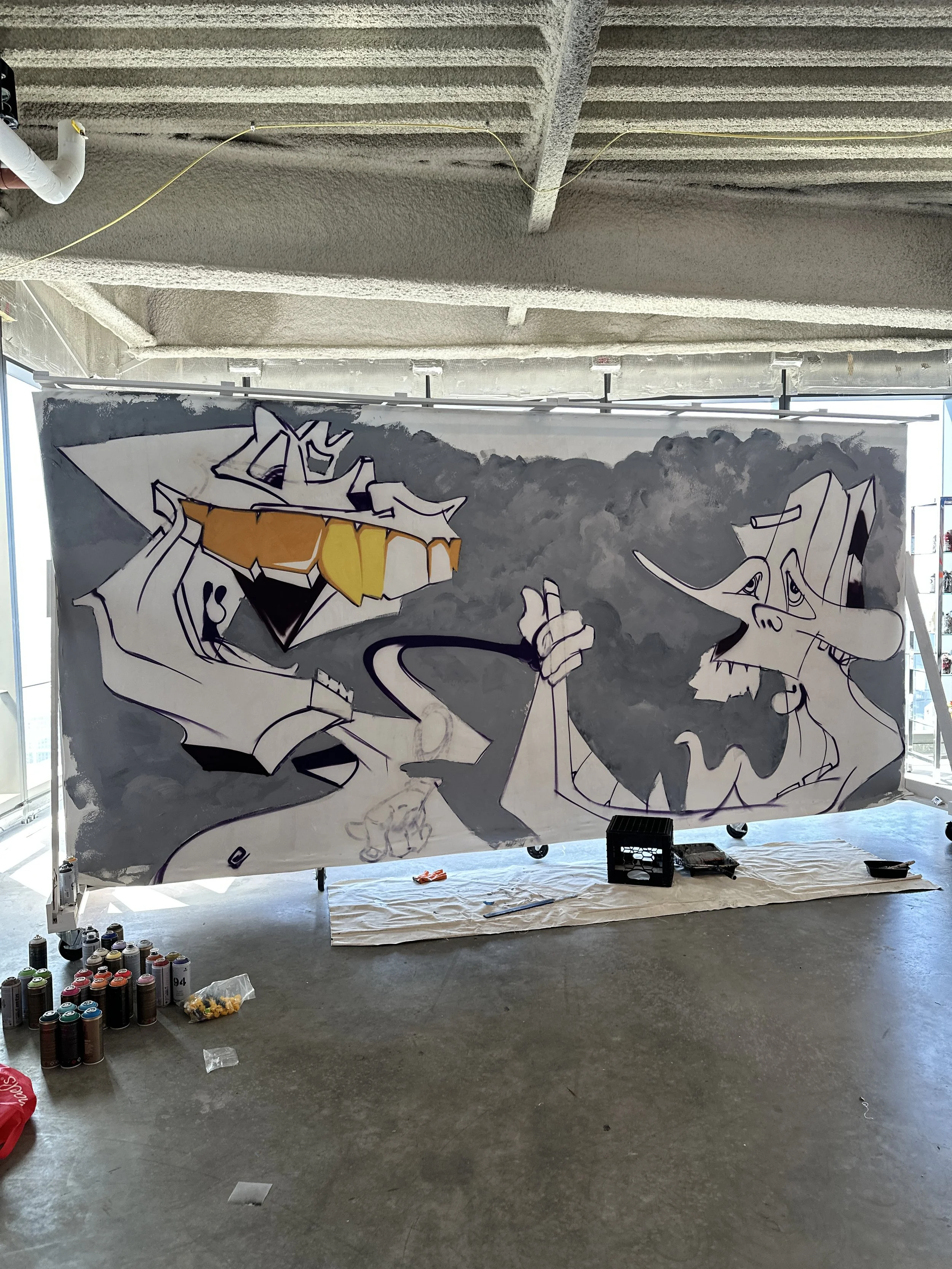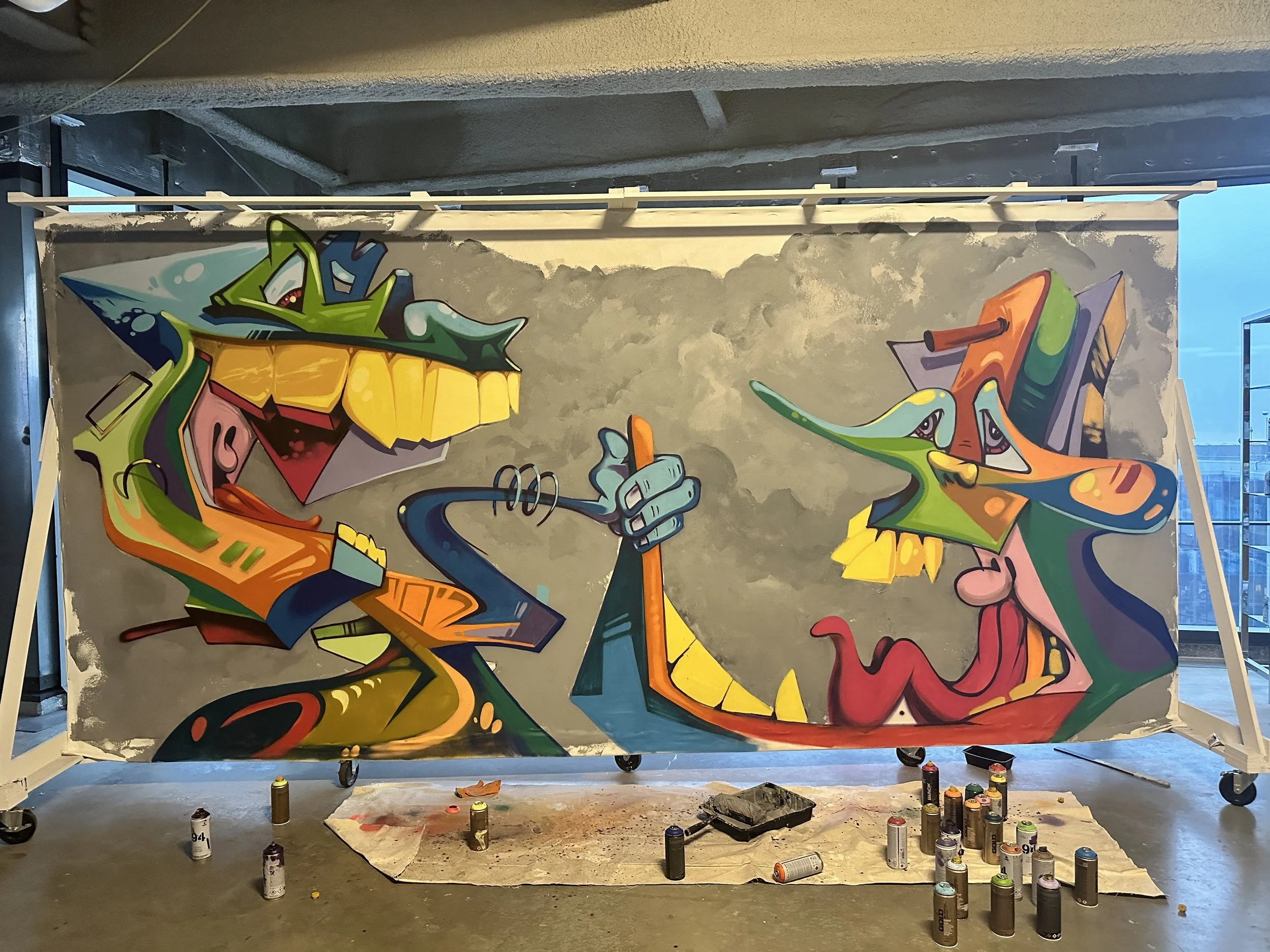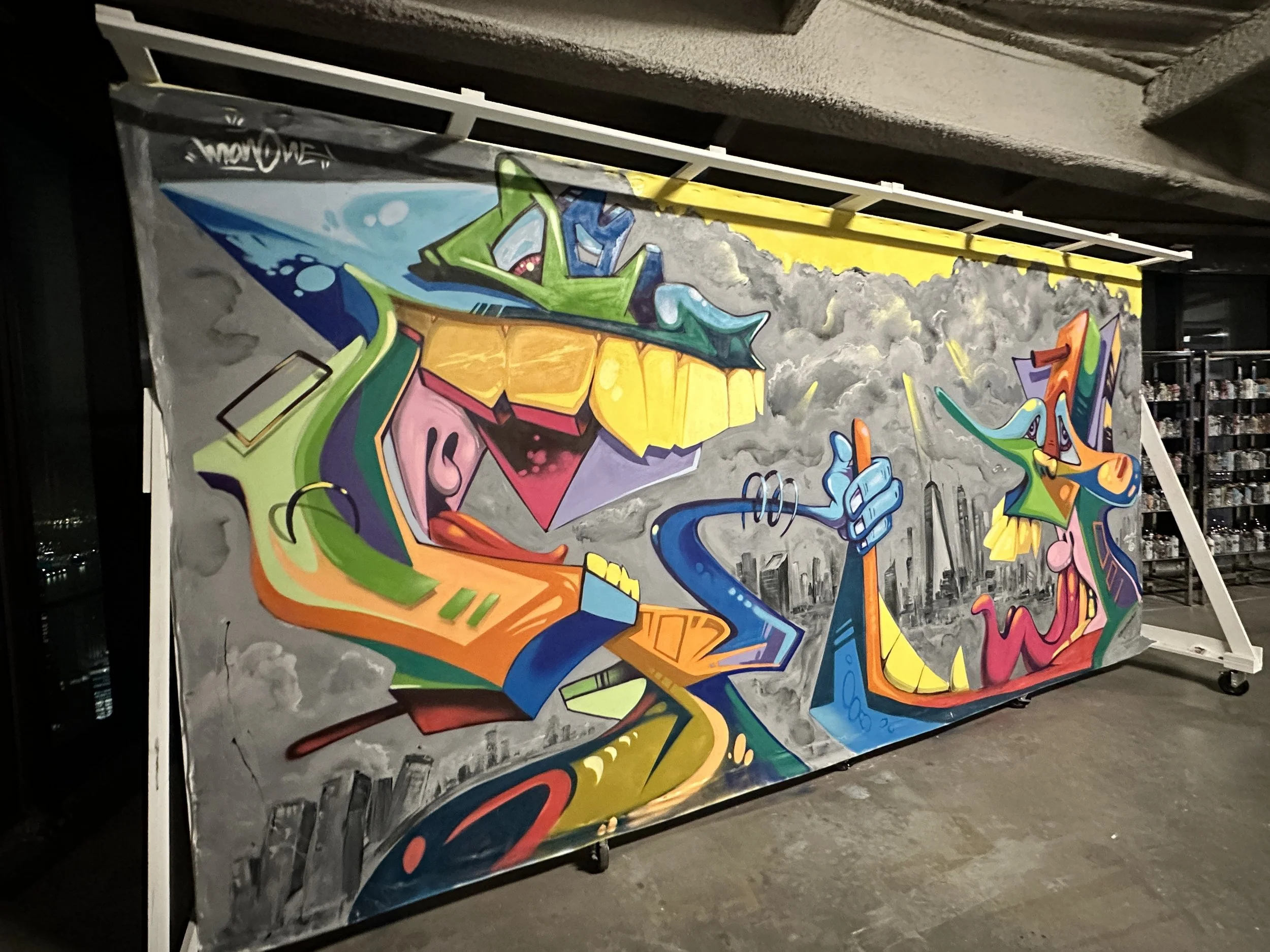 I was commissioned by Silverstein Properties to create a mural at the World Trade Center 3. The mural was painted on canvas stretched onto a 7’ x 16’