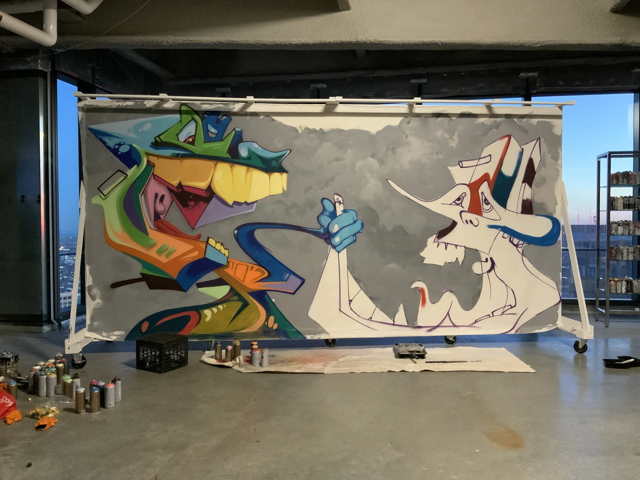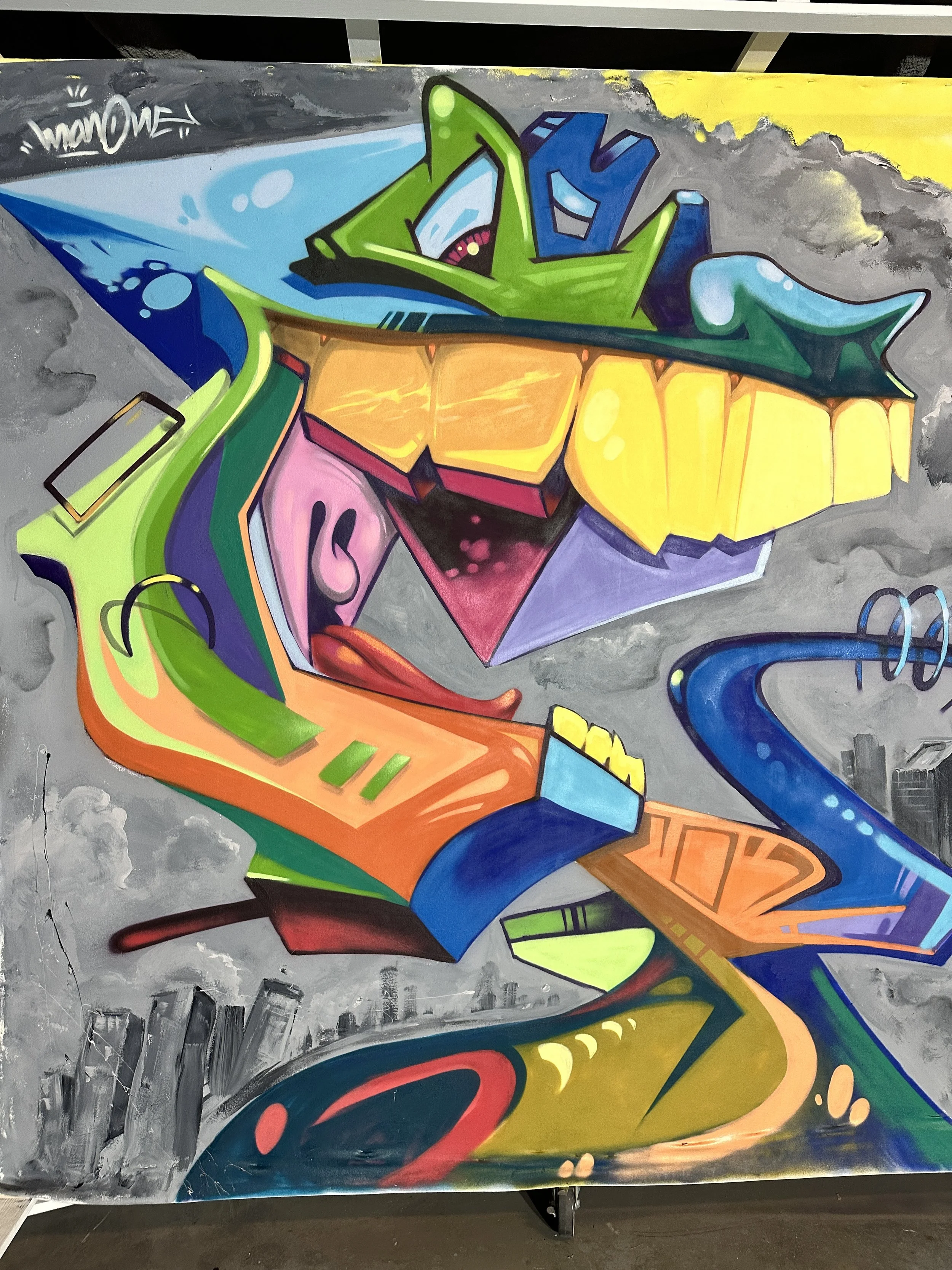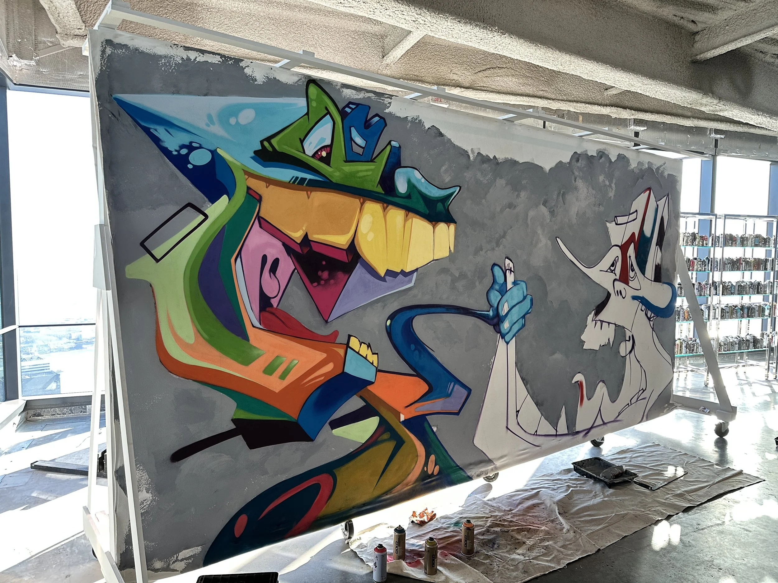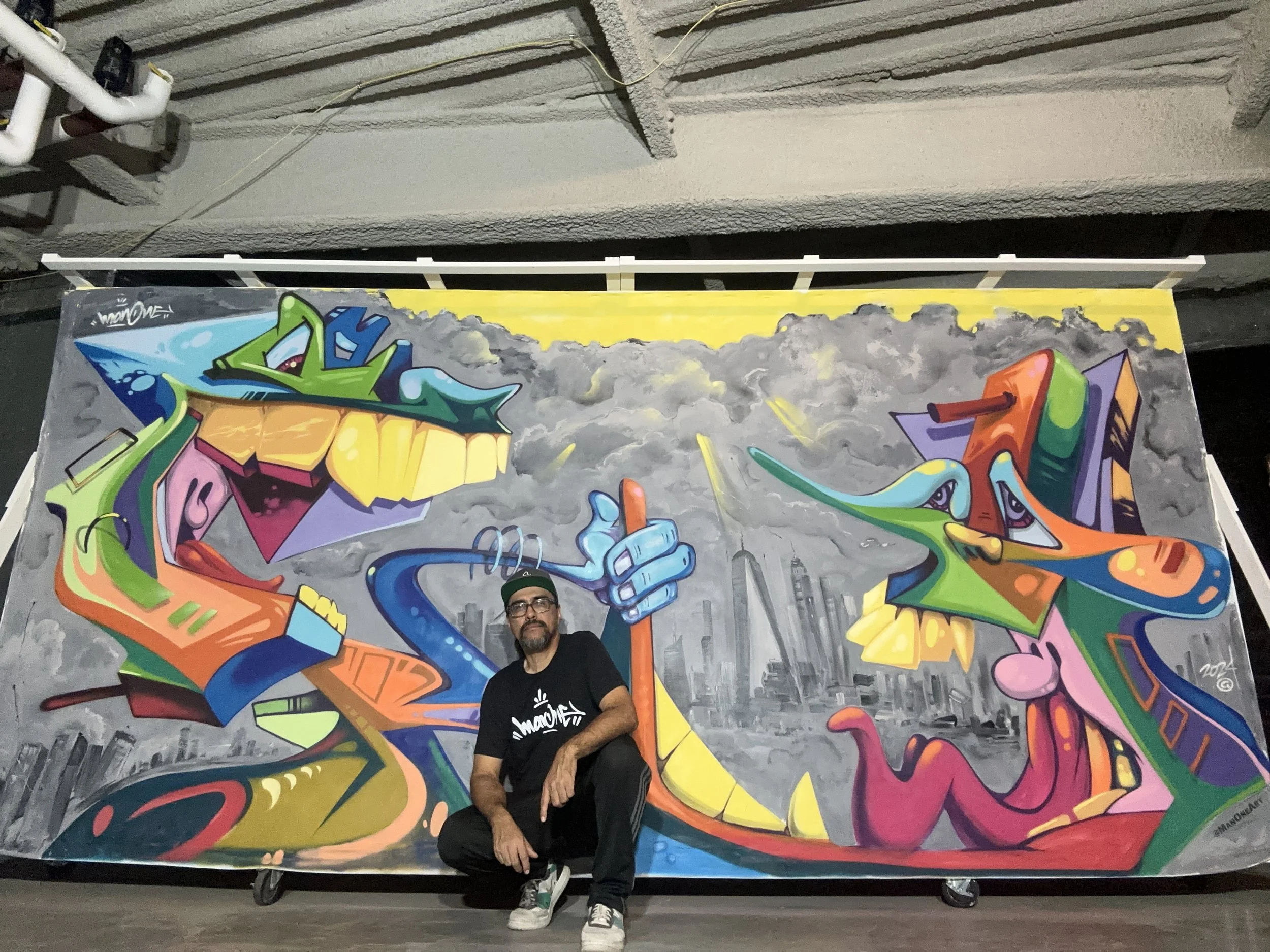 I was commissioned by Silverstein Properties to create a mural at the World Trade Center 3. The mural was painted on canvas stretched onto a 7’ x 16’