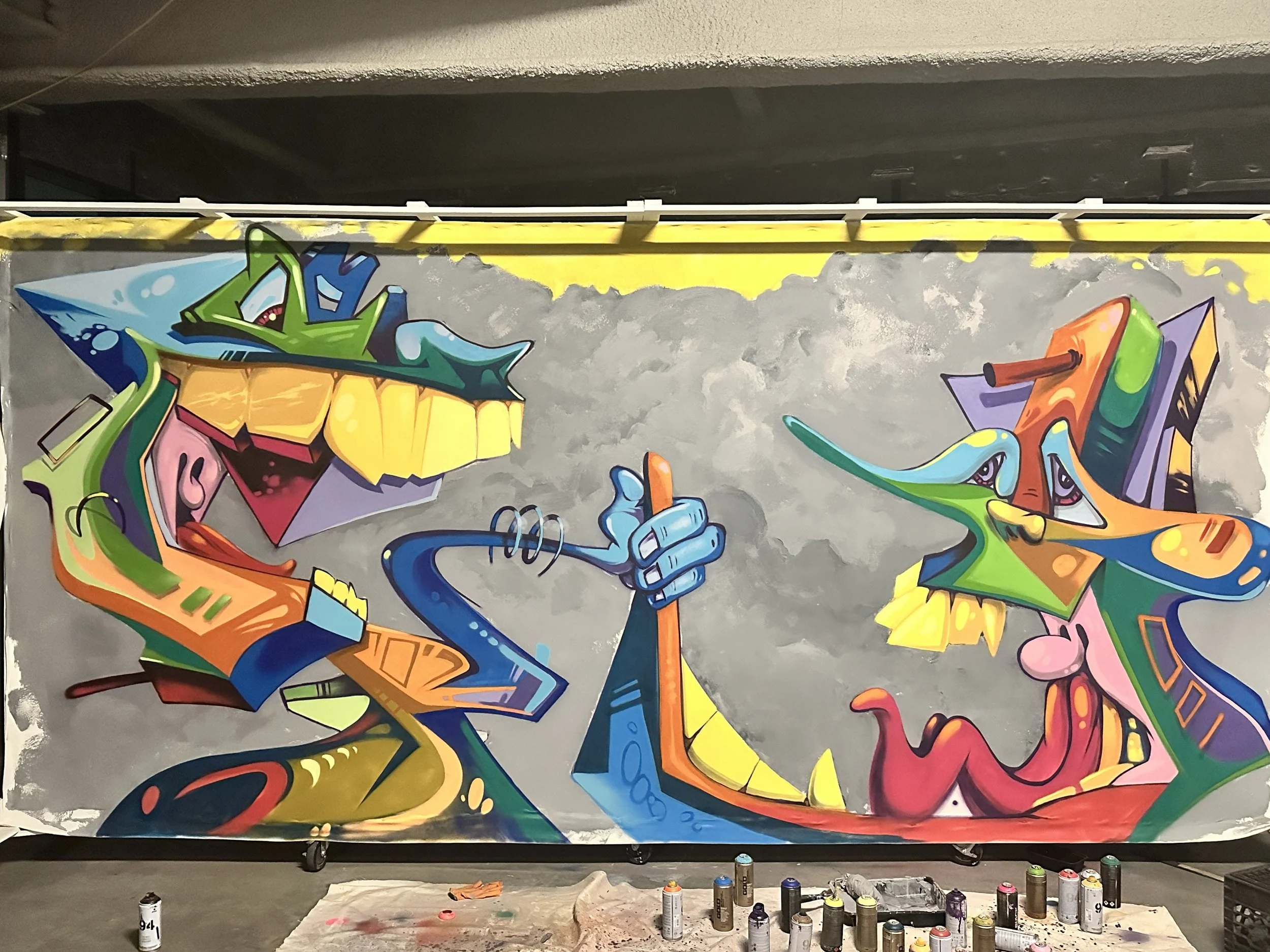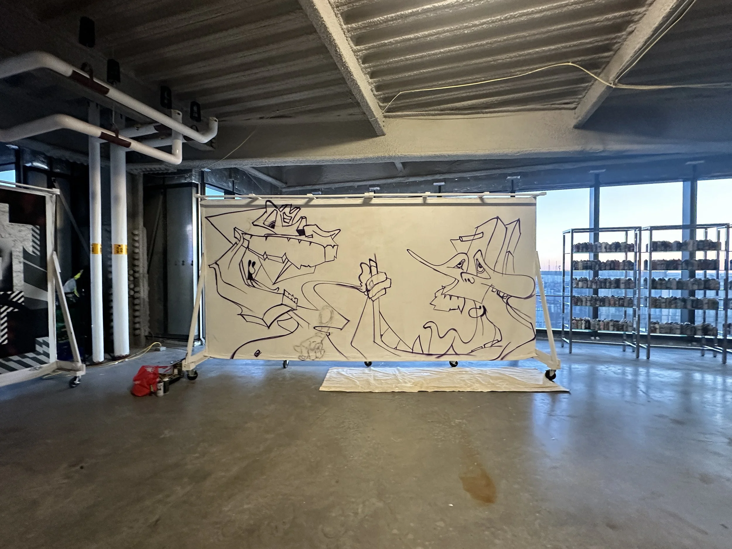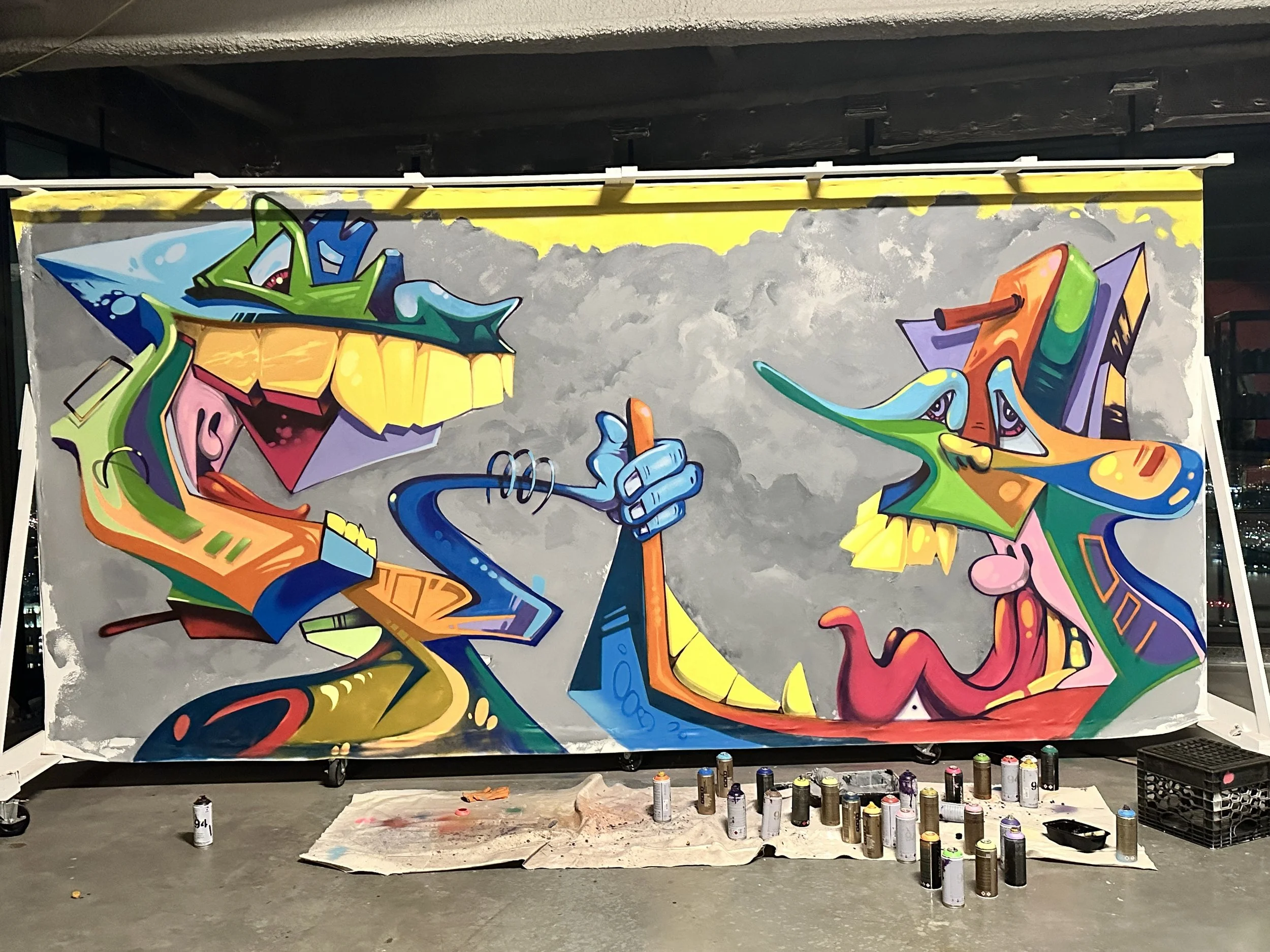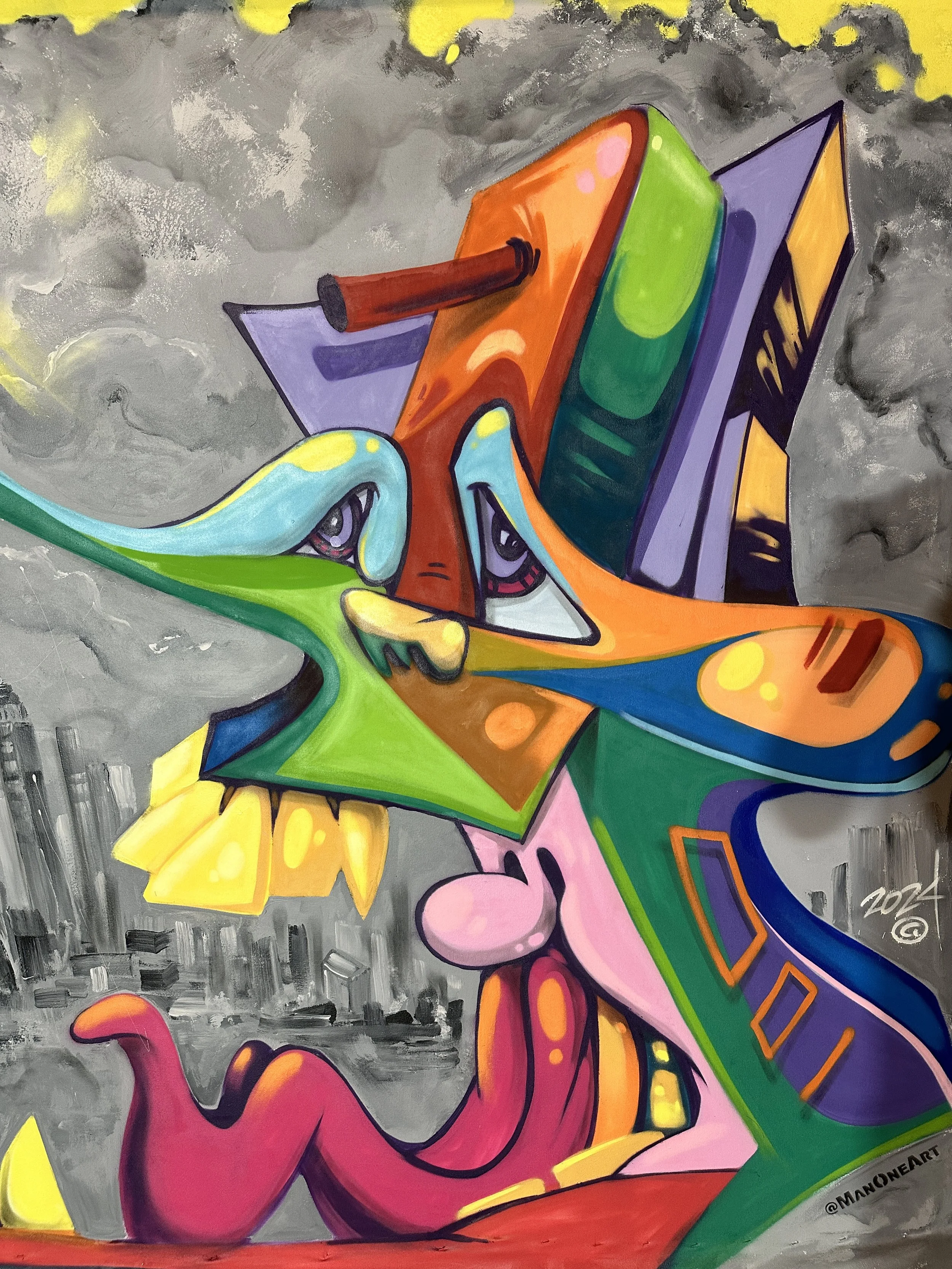 I was commissioned by Silverstein Properties to create a mural at the World Trade Center 3. The mural was painted on canvas stretched onto a 7’ x 16’