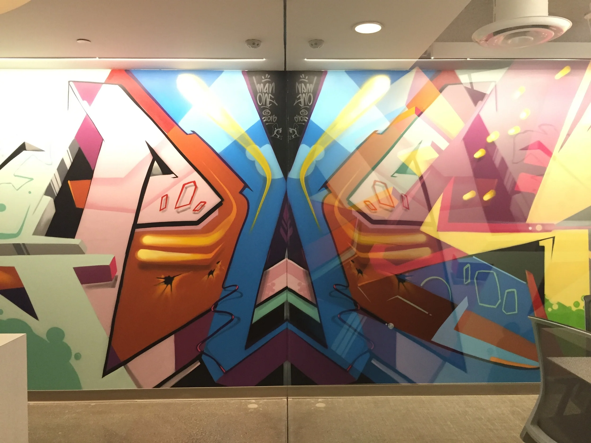 Fidelity National Title recently commissioned me to create a unique and colorful graffiti style mural in the reception area of their new offices.