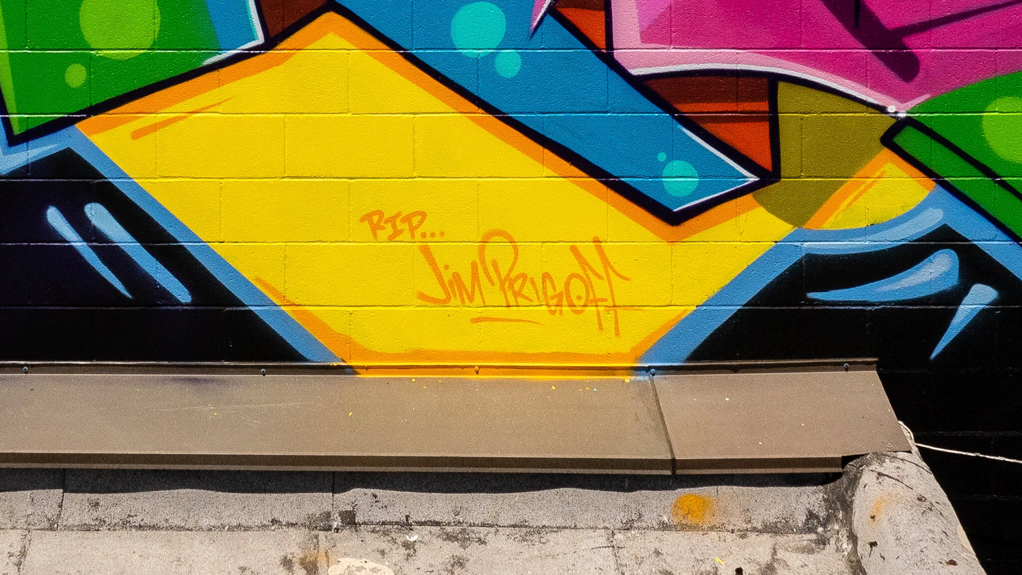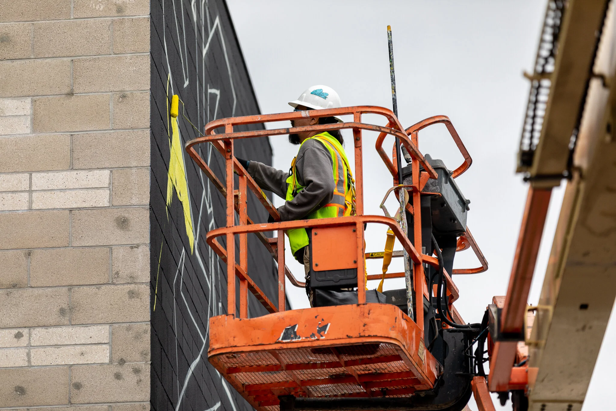The mural is a fun vertical MAN piece. Usually my lettering pieces are horizontal but the layout dictated this type of strategy. My son Alex assisted on the gig.